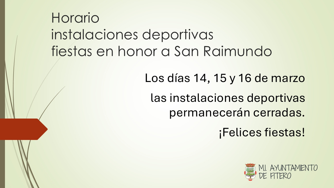 Los días 14, 15 y 16 de marzo las instalaciones deportivas permanecerán cerradas.