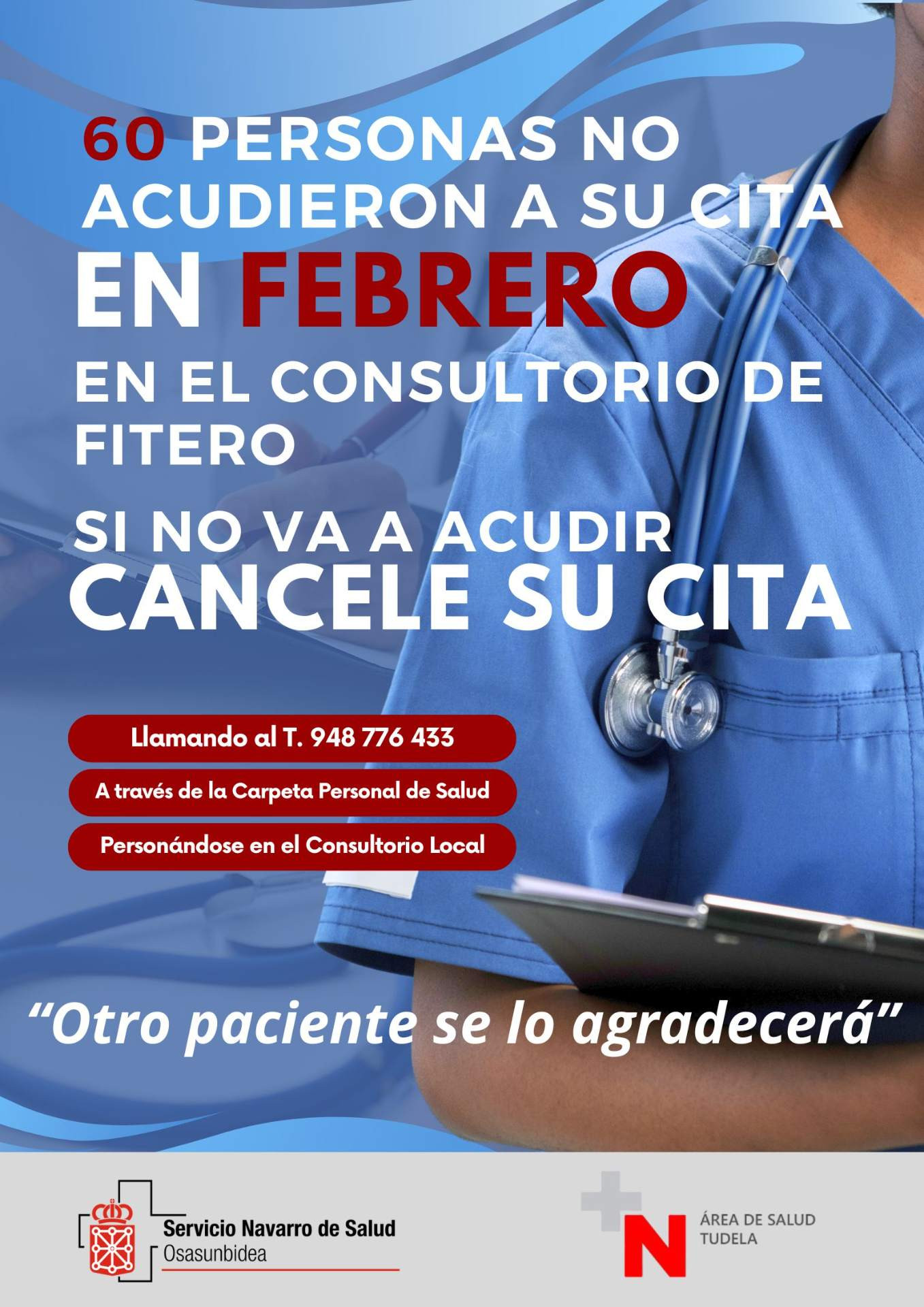 Si no puedes acudir a tu cita en el Consultorio de Fitero, cancélala.