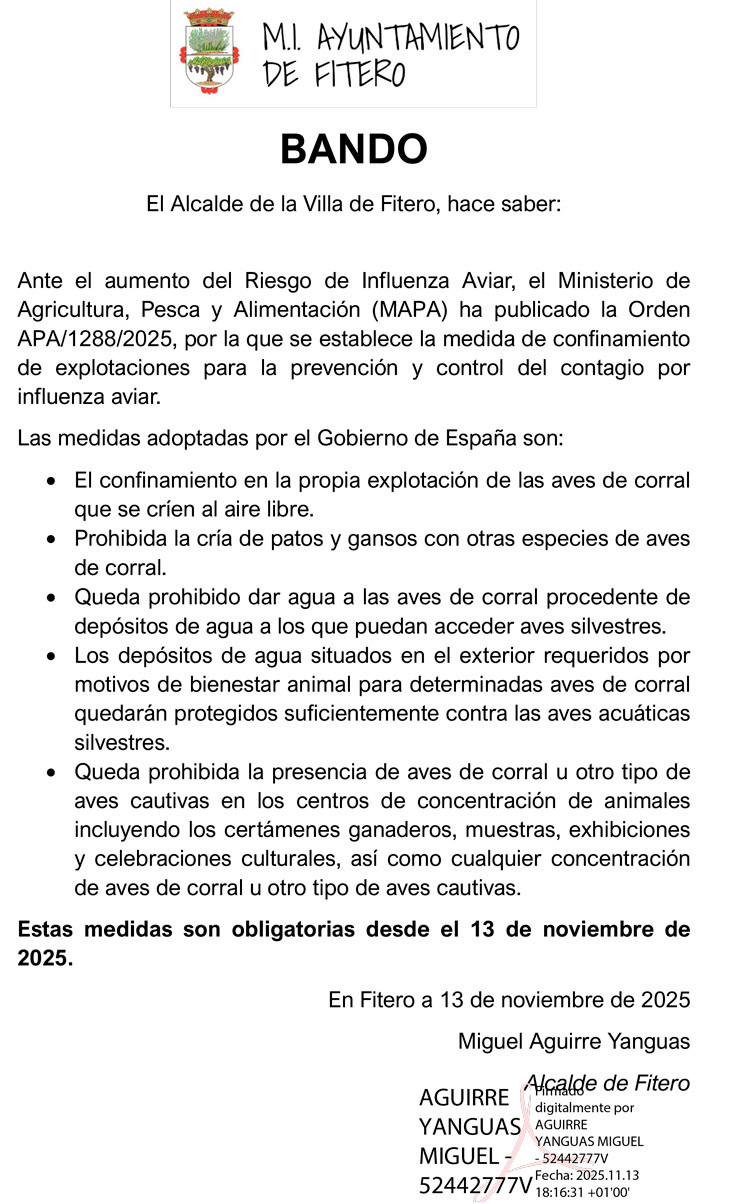 BANDO PREVENCIÓN Y CONTROL DEL CONTAGIO POR INFLUENCIA AVIAR