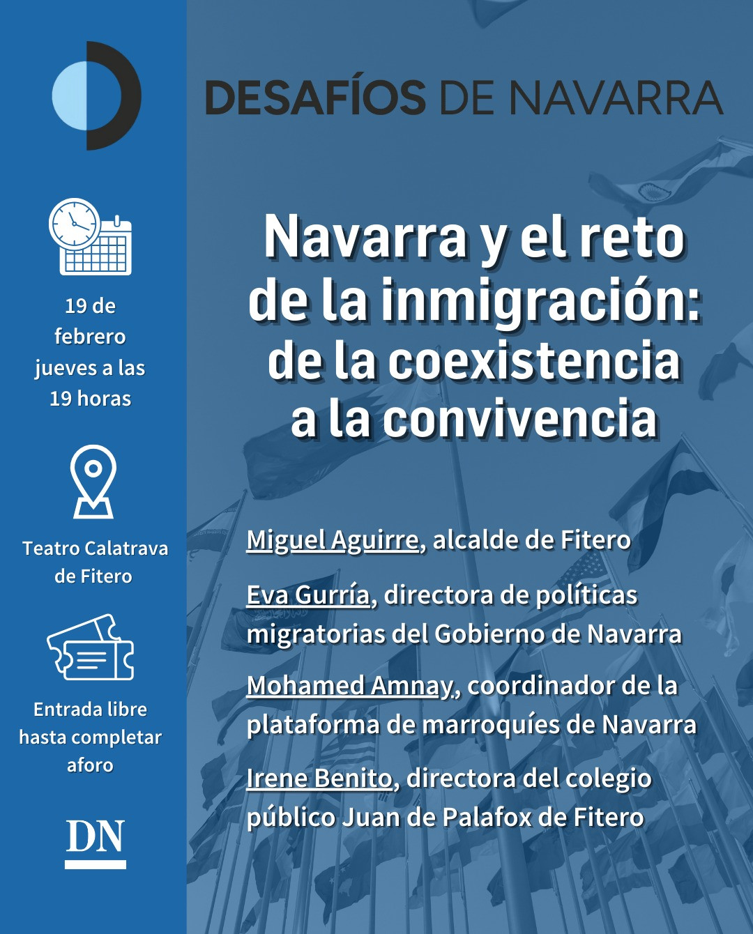 "Navarra y el reto de la inmigración: de la coexistencia a la convivencia" Entrada libre hasta completar aforo. Más información en cartel adjunto.