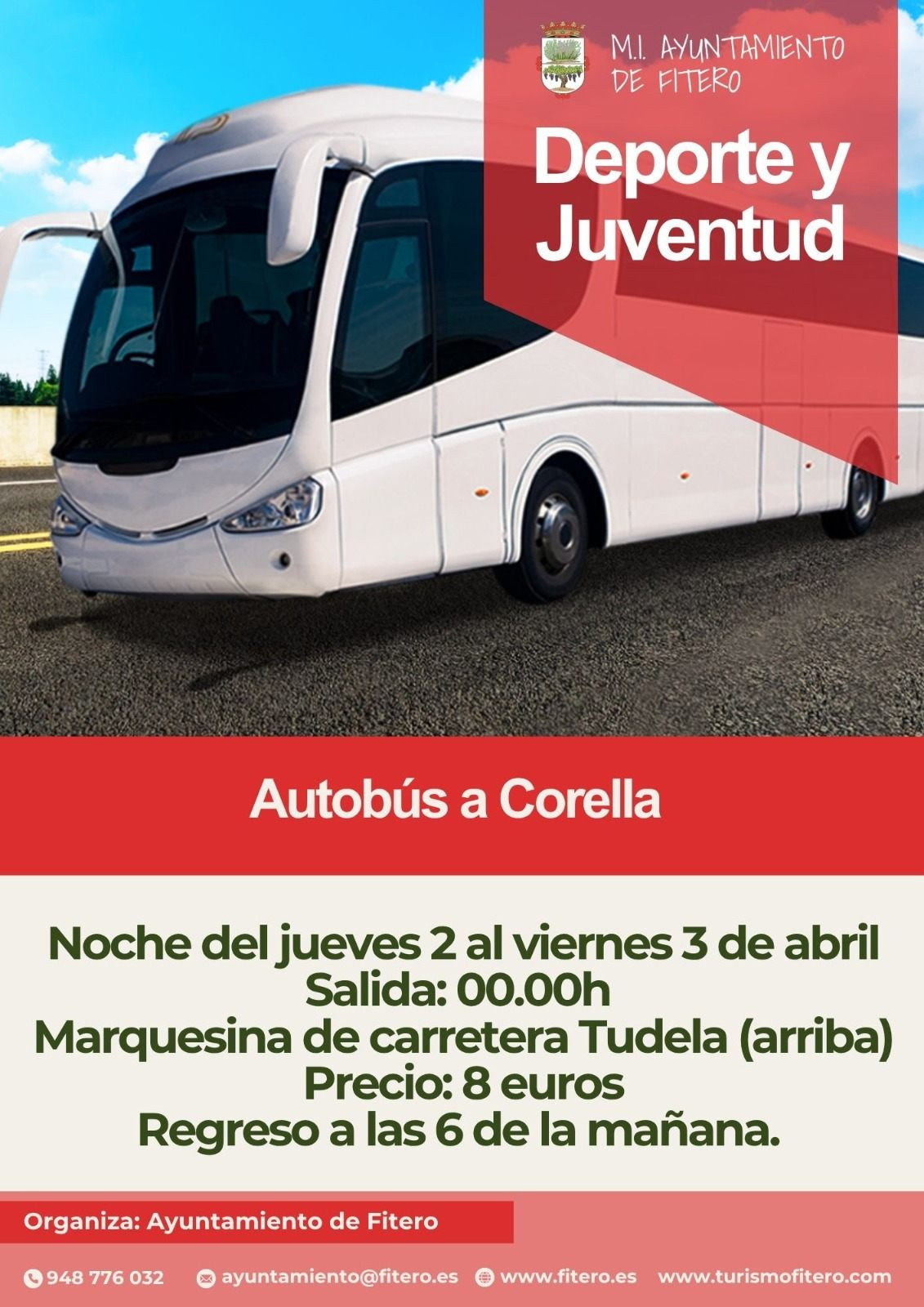 Servicio de transporte organizado por el Ayuntamiento de Fitero para la noche del jueves 2 al viernes 3 de abril.