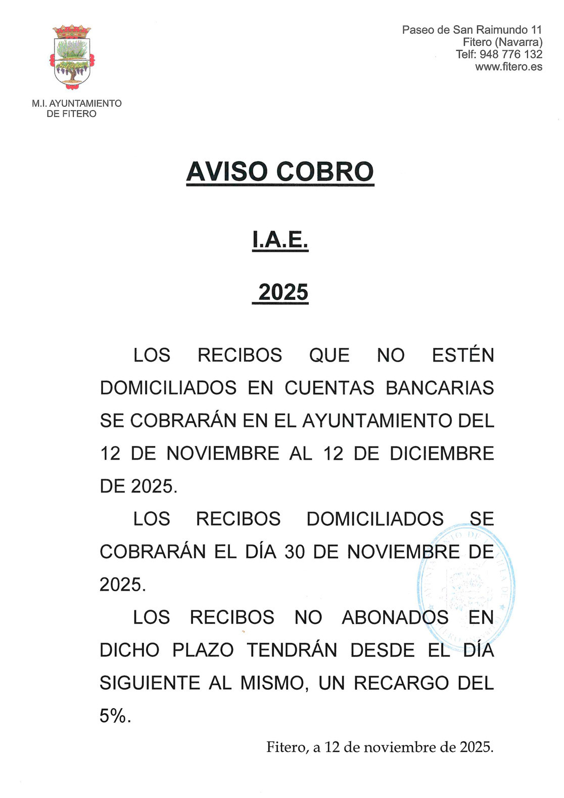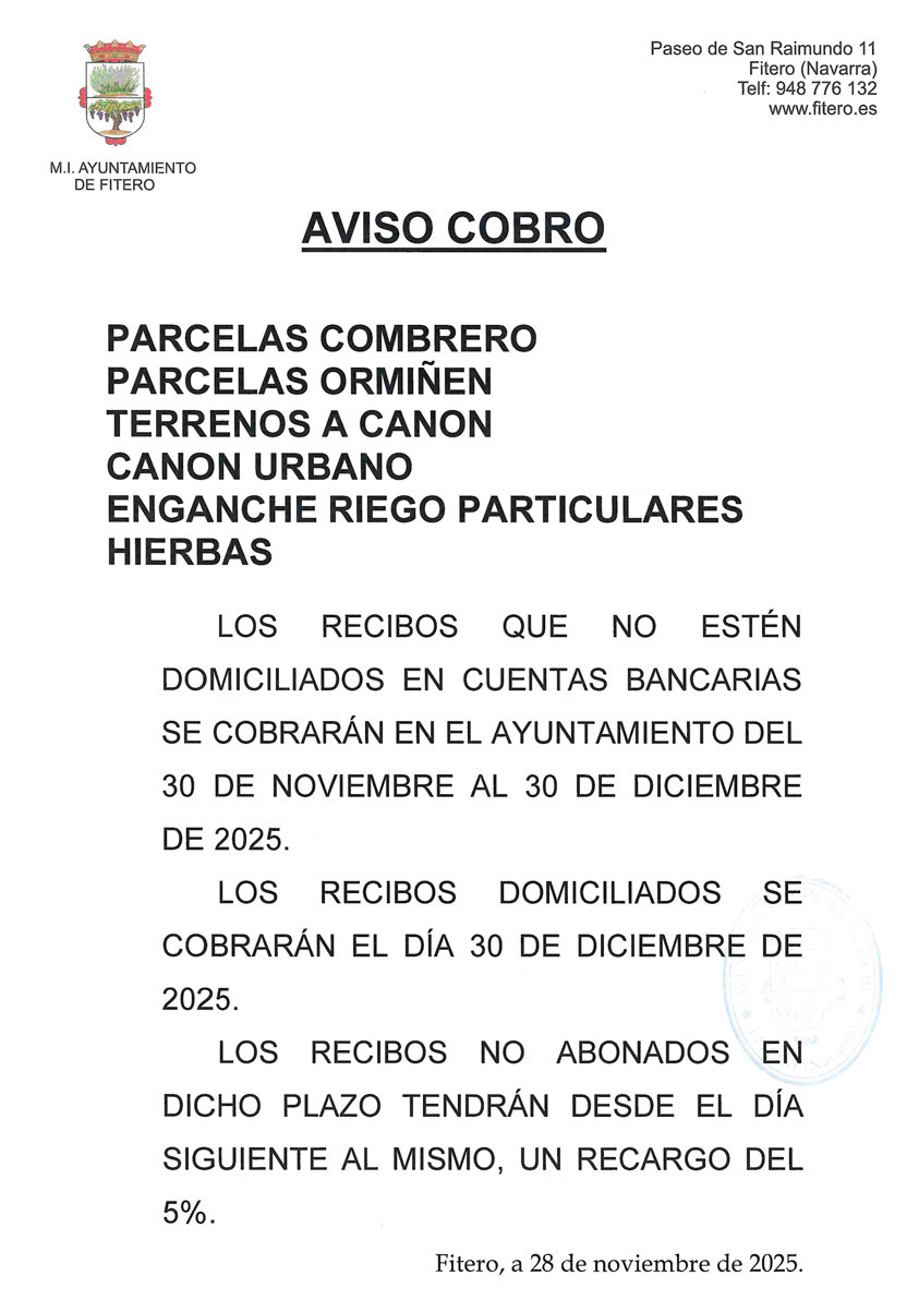 Cobro del 12 de noviembre al 12 de diciembre de 2025.