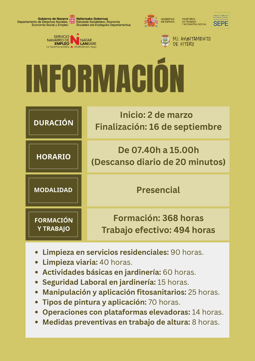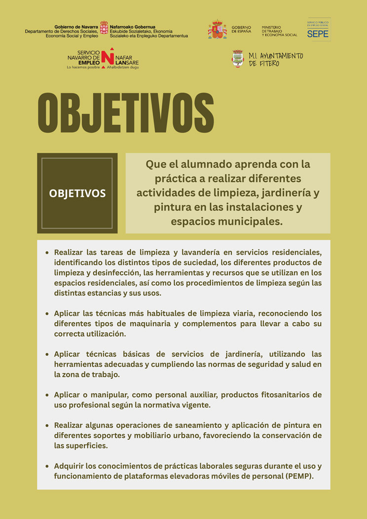 TALLER DE FORMACIÓN Y EMPLEO EN FITERO DE MANTENIMIENTO Y LIMPIEZA MUNICIPAL