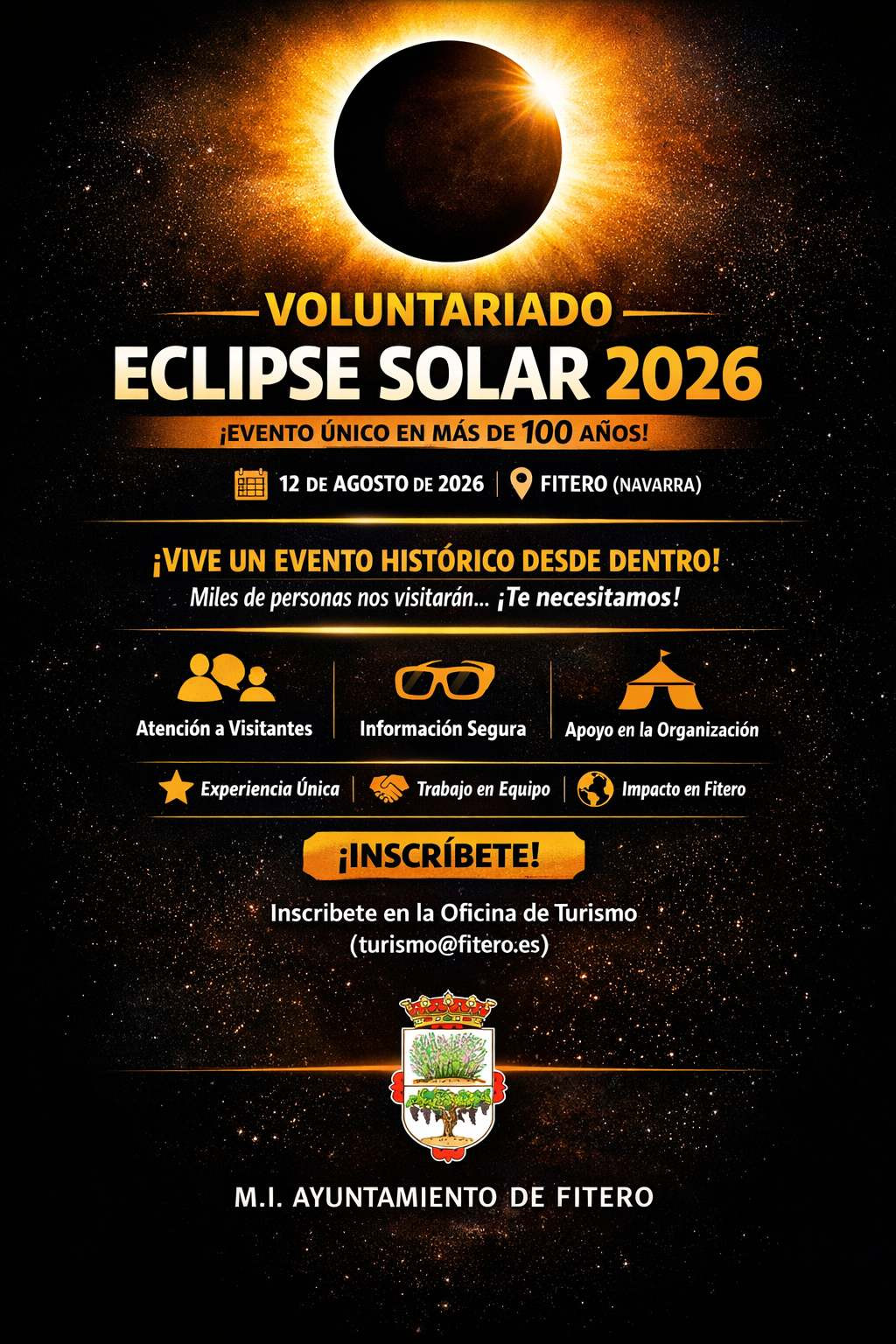 Se necesitan voluntarios para: Atención a Visitantes, Información Segura y Apoyo en la Organización. Inscripción disponible en la Oficina de Turismo de Fitero ( turismo@fitero.es )