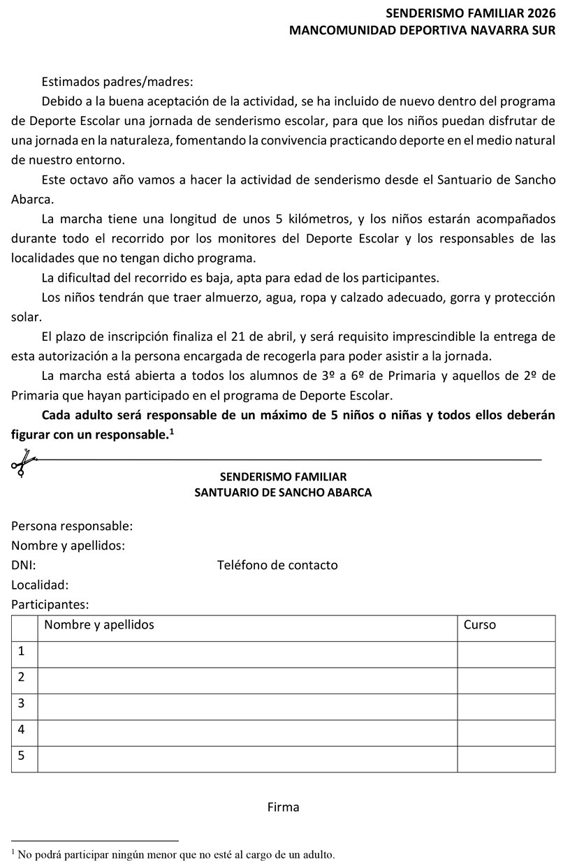 Ruta familiar de baja dificultad en el Santuario de Sancho Abarca. Inscripciones hasta el 21 de abril. Más información en documentos adjuntos.
